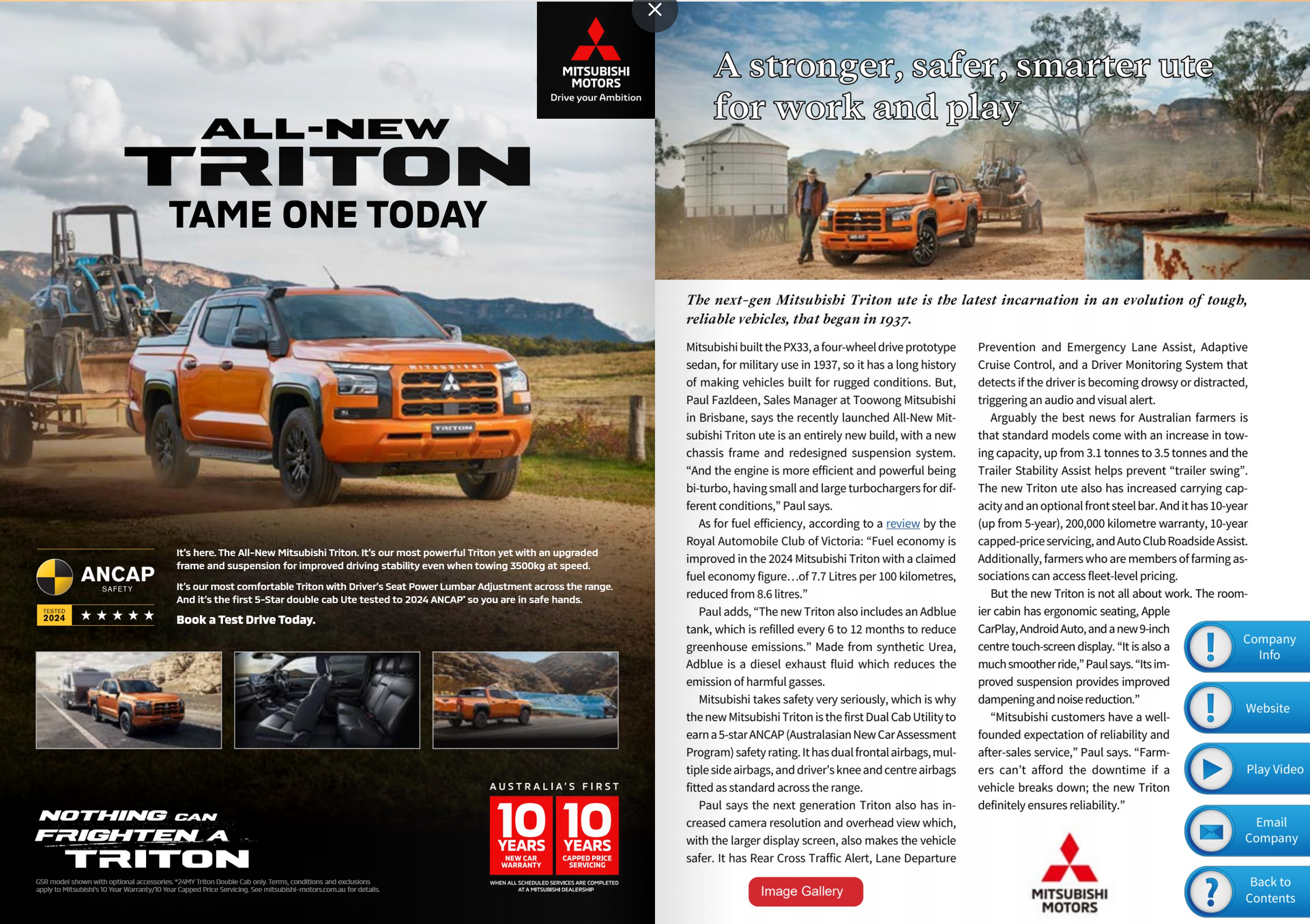 The Australian Farmer (TAF) furnishes definitive information, in print, graphical and video formats, on a wide range of advanced agricultural thematics. Most of the articles in TAF, authored by invited industry leaders, cover a broad range of topics such as thought leadership, expert opinion, findings industry trends, the R&D findings, and future concepts. TAF is made available completely free of charge thanks to a few dozen fine sponsoring companies. The other important content category in TAF, delivered as sponsored articles and or advertisements, is on the various agricultural solutions and other products that help improve famer productivity, profitability, and lifestyle from various suppliers in the private sector. This includes ag machinery and equipment, crop protection, soil health, ICT, energy, pumps, irrigation, animal health and nutrition, sheds, mobility and tyres, education, finance, healthcare, travel, and fashion. TAF offers your company a platform to connect with and influence the attitudes and behaviours of your farmer target market to achieve meaningful ROI.