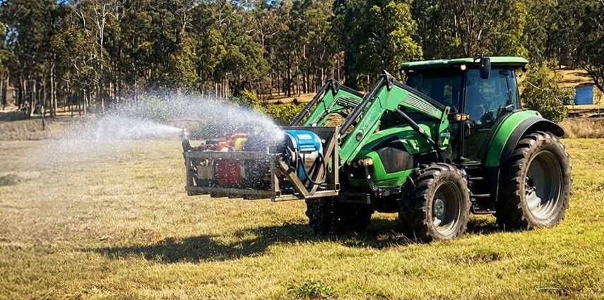 A NSW-based innovator has developed a patent-pending, front-mounted firefighting and utility system for tractors, giving farmers instant, in-cab-controlled fire suppression, water and fuel on hand, and safer solo operations.