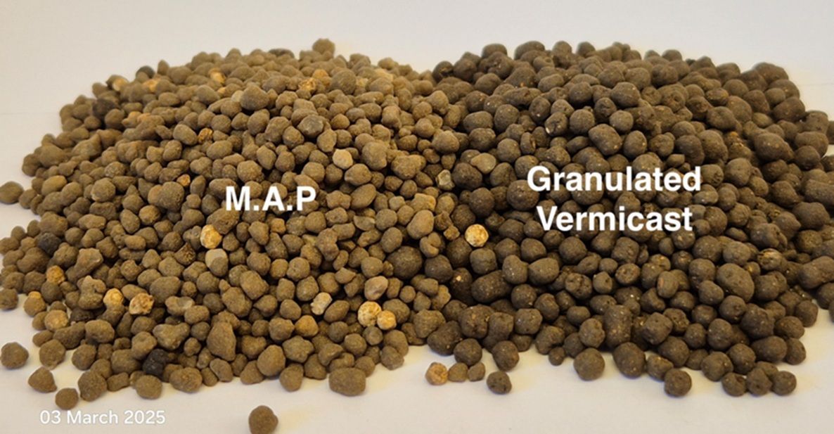 A team of ag-tech innovators set out to transform raw vermicast into a high-performance, granulated product that could be seamlessly used in existing fertilising systems traditionally used with Monoammonium Phosphate (MAP) and other synthetic fertilisers.